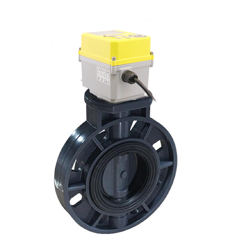Normally closed valve: PVC electric butterfly valve with power-off reset setting.